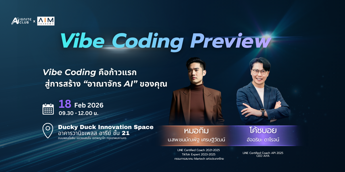 ติดตาม AIYA เพื่อรับข่าวสารอีเวนต์ กิจกรรม และโอกาสในการเรียนรู้ AI ก่อนใคร