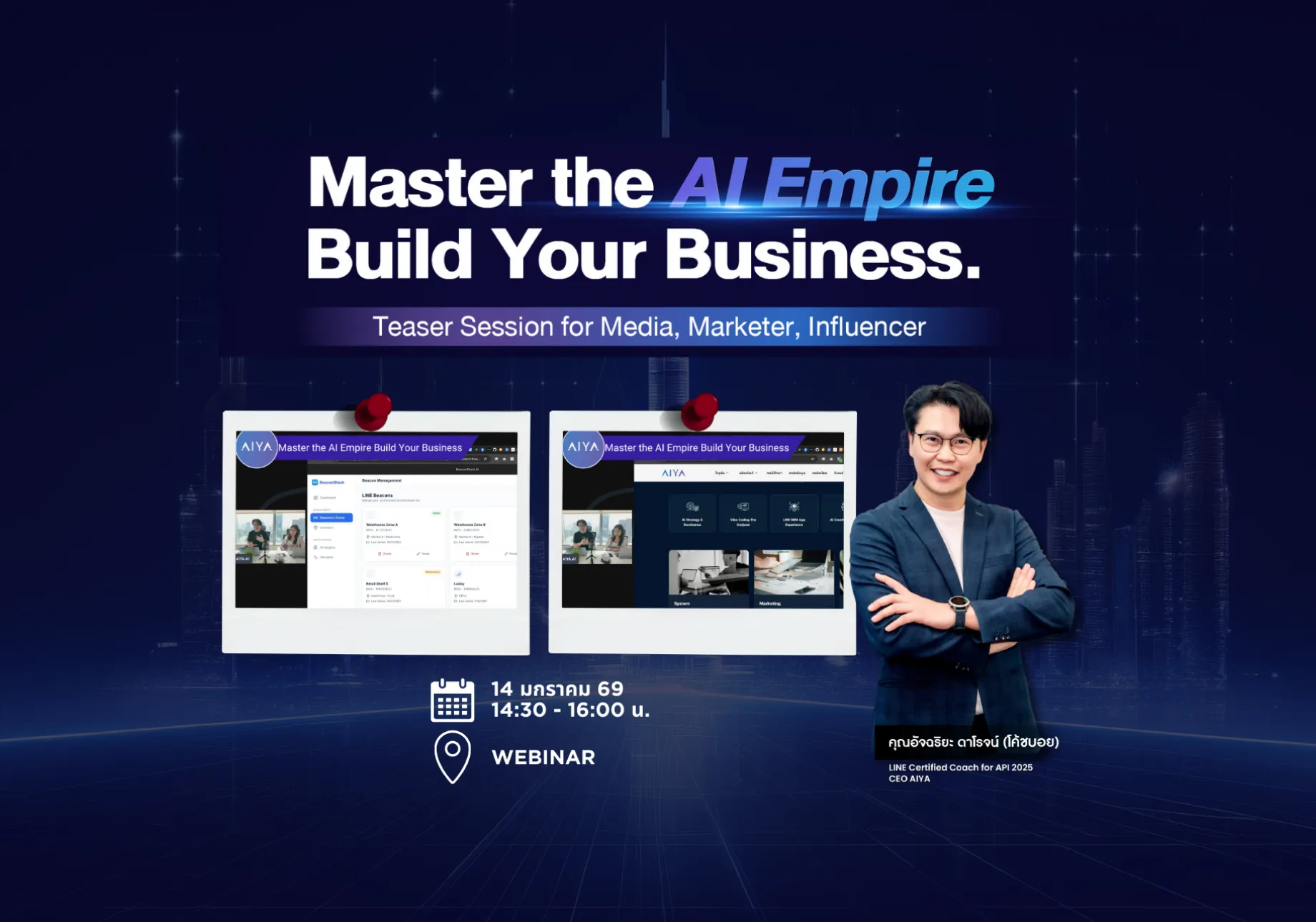 ร่วมงานกับ AIYA ในอีเวนต์ต่างๆ เพื่อเรียนรู้และสัมผัสประสบการณ์การ Transform ธุรกิจด้วย AI จากผู้เชี่ยวชาญตัวจริง